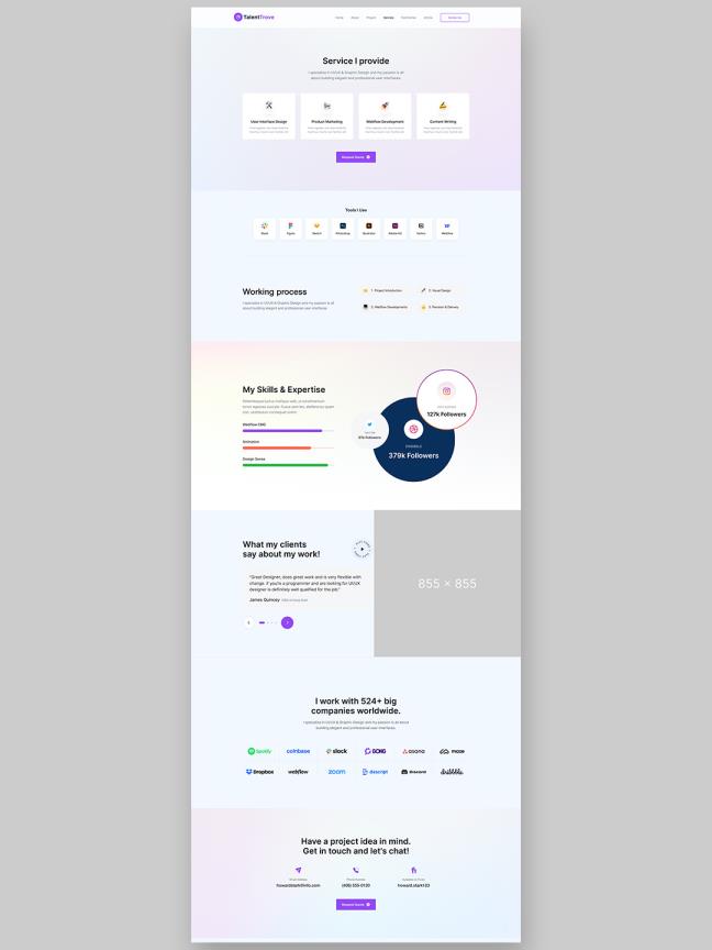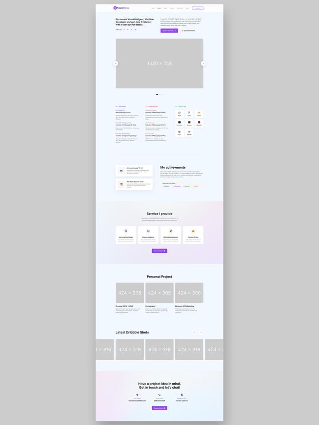 7页设计师作品集网站设计高保真原型Figma与PNG, JPG和PDF