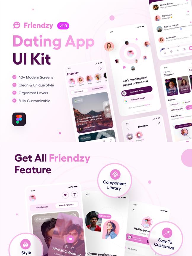 40页社交恋爱app、陌生人匹配、交友APP UI资源套件figma源文件 设计资源 2025-02-27 figma 恋爱app、陌生人匹配、交友APP UI资源套件figma源文件 阅读全文 资源下载下载价格1.2 素材币VIP免费升级VIP立即购买