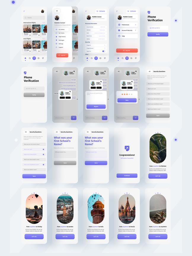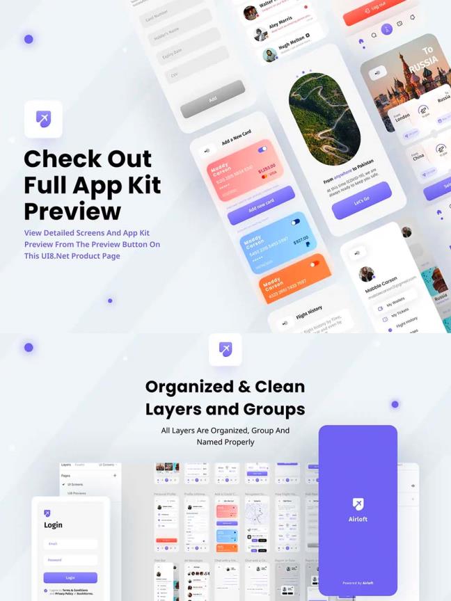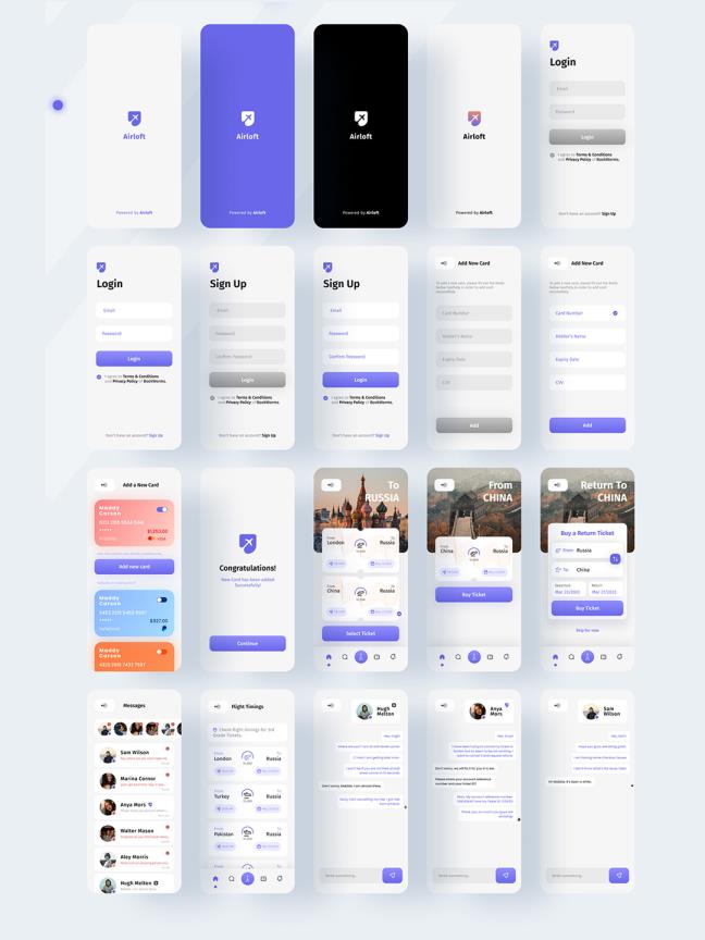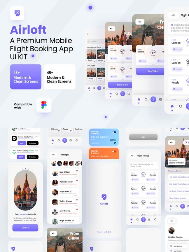 45页航班预订,机票订购app UI资源素材figma源文件