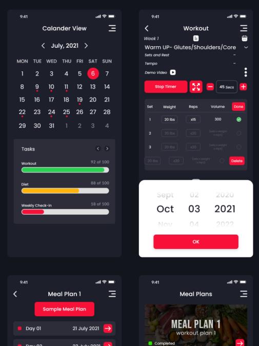 用户可以每天跟踪他们的旅程,与教练聊天,或与其他用户进行群聊以完成问卷以从教练那里获得更好的健身计划,使用照片检查他们的进度,管理睡眠模式并跟踪测量值,等等 女性可以追踪她们的周期。该应用程序包含一个广泛的进度摘要仪表板,让用户可以鸟瞰打造迷人身材所需的一切。