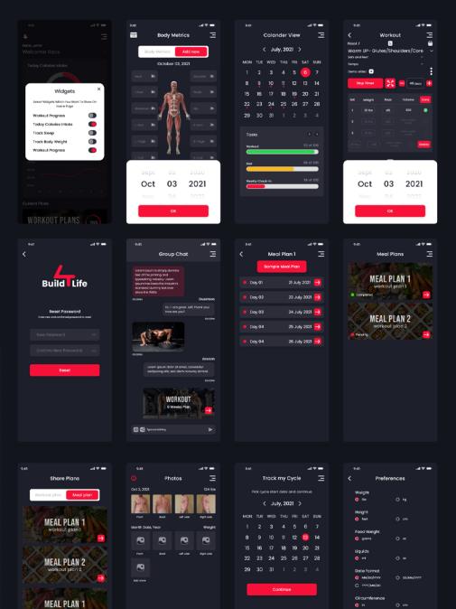 Build4Life 是一款健身和健美应用程序。此应用程序允许您创建自己的健身计划以满足您的需要。UI/UX 的设计考虑了健身和健美运动的所有必要需求。