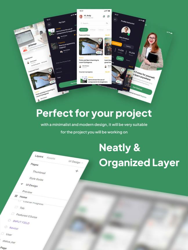 50页在线教育APP 线上教育在线课堂APP UI资源素材figma源文件 设计素材 2025-02-15 figma 概述 为具有 50 多个页面的课程设计 Minimaslist 设计 UI 套件。 已经为每个组配备了分组和命名,以便您可以更轻松地编辑它并拥有明暗主题。 使用此 UI 工具包,您可以更轻松、更快速地处理您的个人项目。 您将获得什么:✔️ 50 多个高级页面✔️ 深色和浅色主题✔️ 完全可定制✔️ 现代简约风格✔️ 整齐有序的图层✔️ 全球风格指南 阅读全文 资源下载下载价格1.2 素材币VIP免费升级VIP立即购买