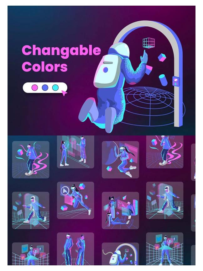 元宇宙场景相关的矢量插画ai源文件资源套件包