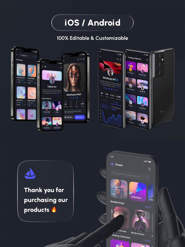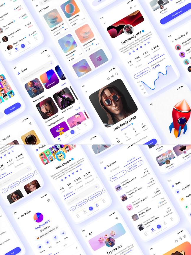 是一款具有 NFT 市场应用程序所有完整功能的优质和高质量 UI 套件。Ossea 具有独特的风格和利基,您可以使用设计组件轻松编辑和自定义所有元素,从而加快项目的设计过程。一切都与设计系统融为一体,因此您只需在设计系统中更改颜色、标志、文字等,整个设计画面就会自动发生变化。