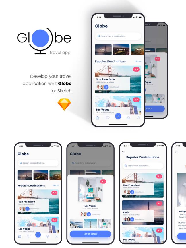19页旅游APP全套UI资源下载,sketch源文件 设计爱好者 2025-02-13 Sketch 概述 使用 Sketch 的“Globe”开发您的旅行应用程序。19 个页面 – 制作精美的移动设计视图。Free Font – 基于 Poppins 字体系列的排版。 时尚设计 组织良好的图层 包括图像和图标 与草图兼容 iOS 兼容 阅读全文 资源下载下载价格0.8 素材币VIP免费升级VIP立即购买