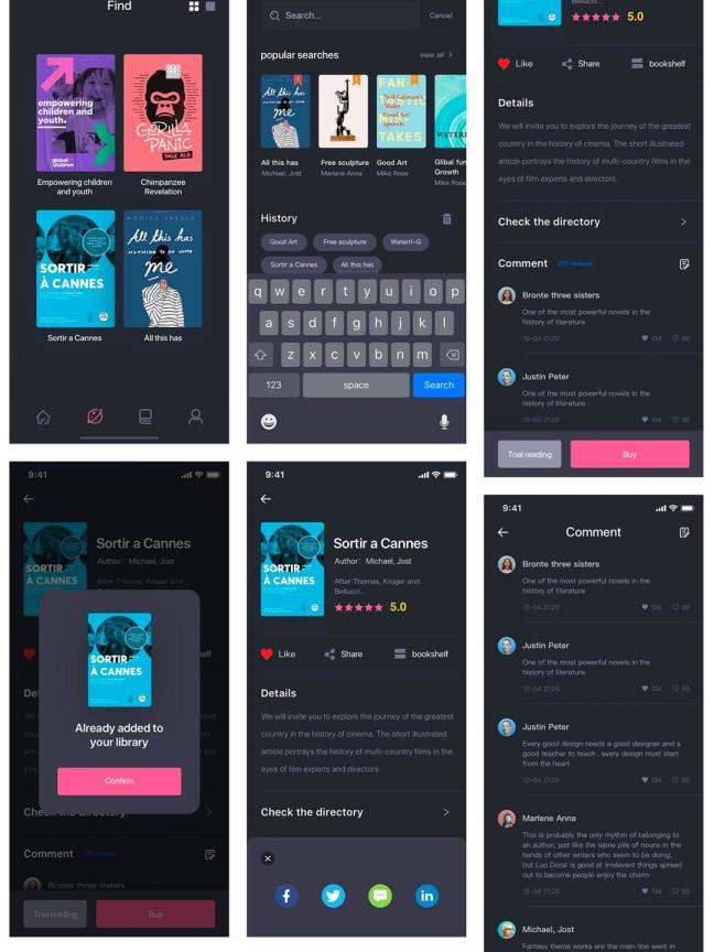 22页暗色全套阅读类APP UI源文件下载,ui资源下载sketch 2025-02-11 figma 概述 同志们好!阅读应用设计是一款暗黑风格的阅读产品,适合夜间阅读,能给用户带来舒适、体验感强的阅读环境和阅读体验。大多数人已经抛弃了传统的纸质书。出于对阅读的热爱,我创建了这个应用程序。 重点 20+ 页面 iOS 黑暗主题 100% 矢量和可定制 100% 颜色可定制 适合素描 阅读全文 资源下载下载价格1.2 素材币VIP免费升级VIP立即购买