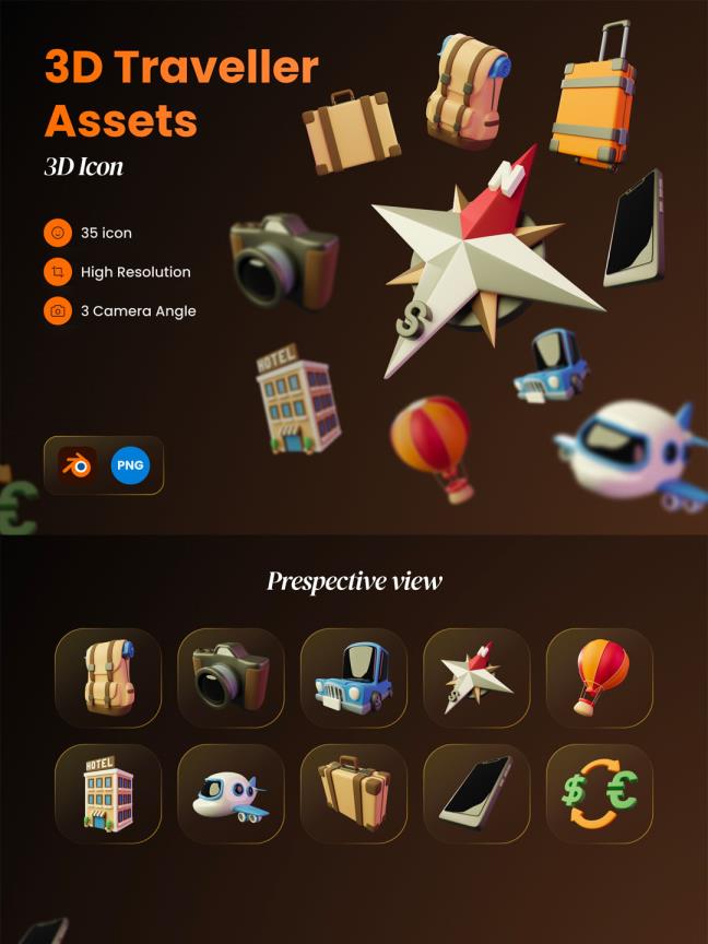 为您的项目带来乐趣和欢乐。在此压缩包中,您会发现 12 个对象以 2 个透视摄像机角度和 1 个等距 .png 渲染,可用于任何应用程序、演示文稿和其他项目。在 Blender 中完全可定制。