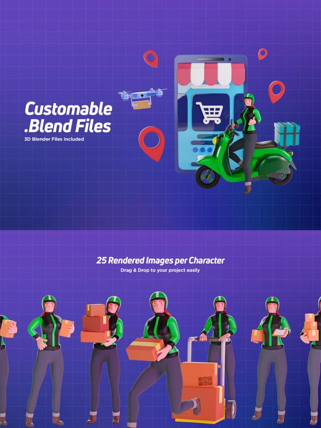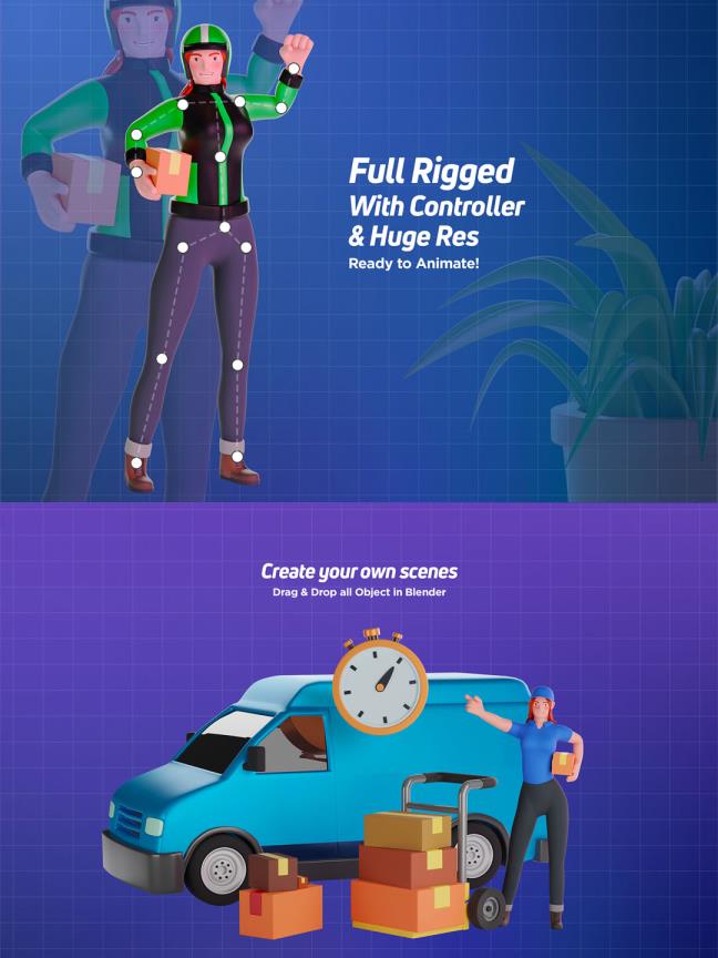 ===3D Character Pack Courier Delivery & 3D Elements object ===