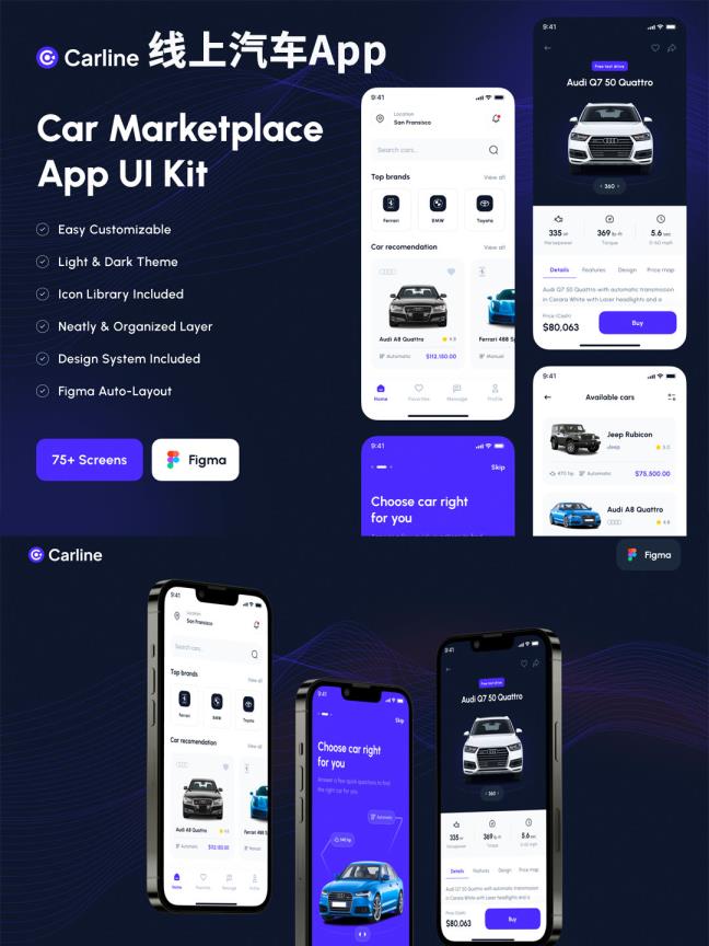 清新简约黑白双色汽车商城APP、在线购车应用 UI资源素材figma源文件 设计爱好者 2025-02-08 figma 概述 Carline 是一个 Car Marketplace 应用程序 UI 套件,具有详细的高质量屏幕,并且在 Figma 中易于使用。我们设计了 75+ 个浅色主题和 75+ 个深色主题移动应用程序设计屏幕。 阅读全文 资源下载下载价格1.8 素材币VIP免费升级VIP立即购买