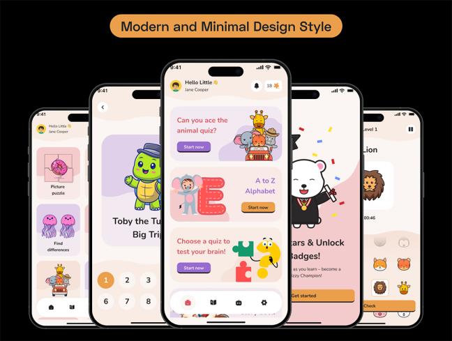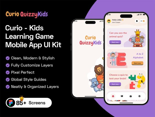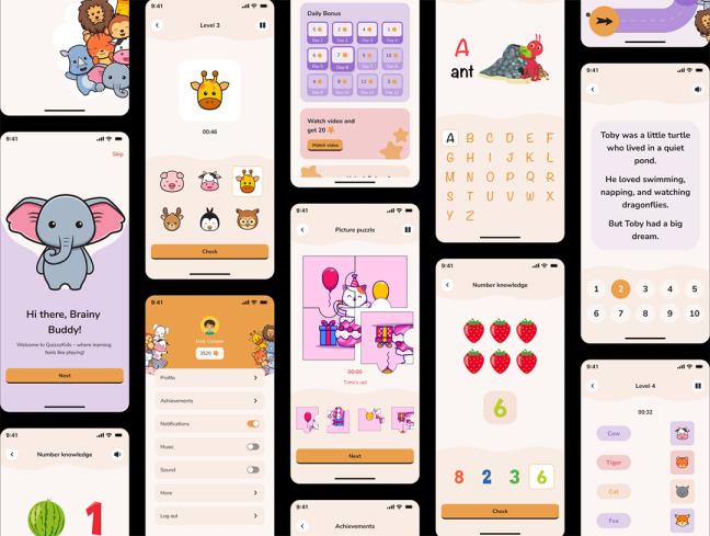 91页专为儿童学习和教育游戏而设计的app UI设计figma格式