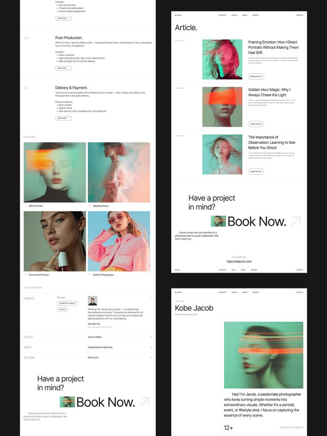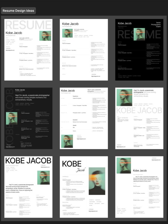 22页极简时尚的专业作品集网页模板figma格式(包含9个简历模版)
