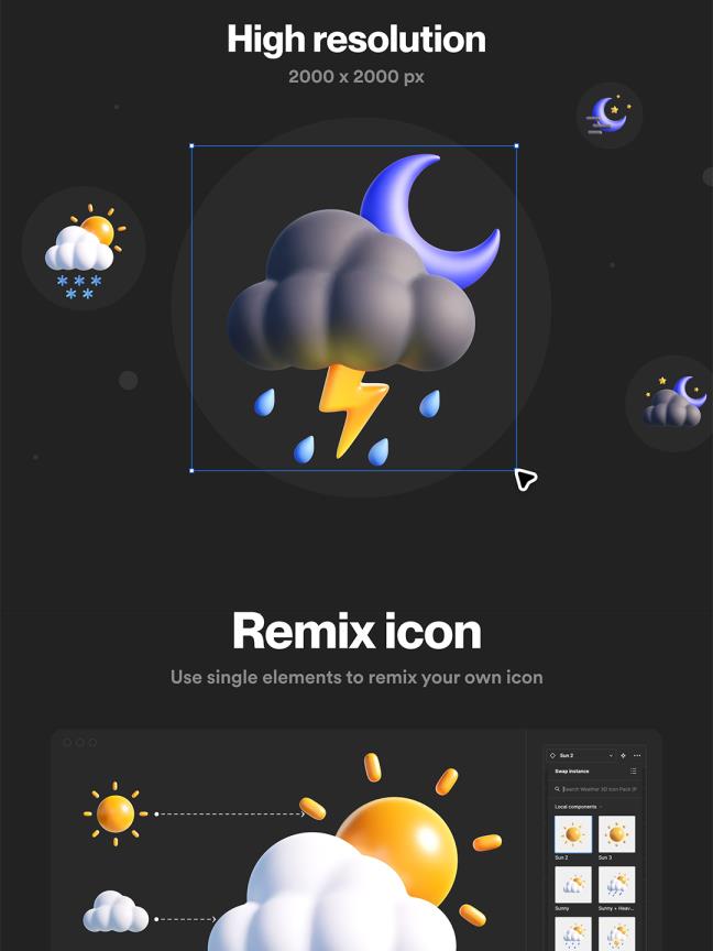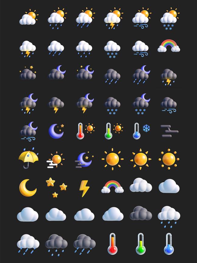 60个时尚可爱的天气图标3D图标包figma、png、Blender格式