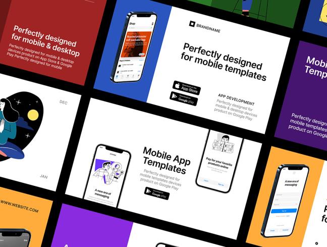 明暗各30页iOS应用程序,作品集展示模板Figma、Sketch、PPT格式