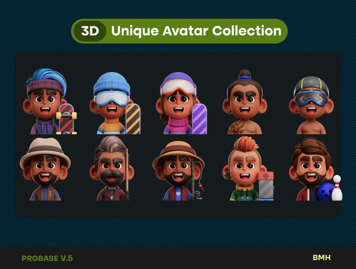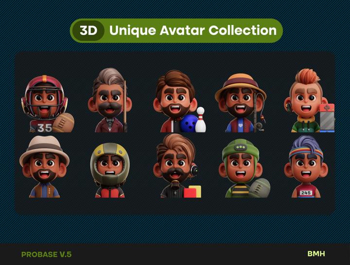 15个运动风格3D头像插图png格式