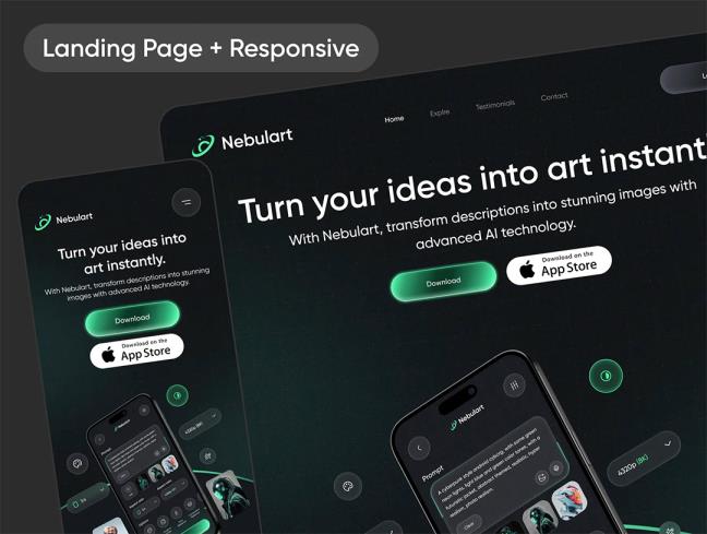 30页人工智能艺术设计图像生产APP+登录页设计figma格式