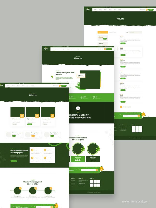4个首页21个二级页面有机绿色食品网站设计原型psd源文件
