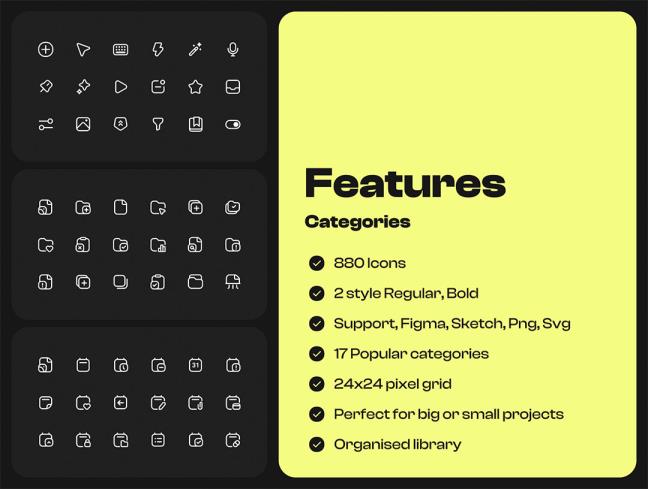 880个17个常用类精致icon图标Figma、Sketch、Svg、Png格式