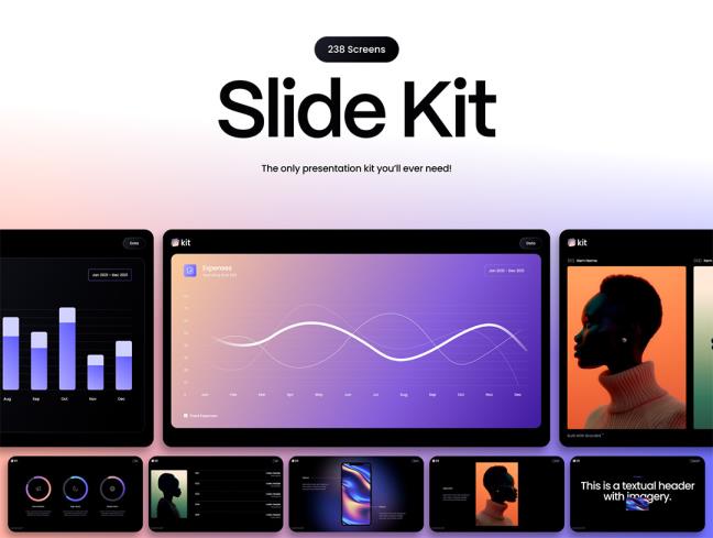 238张设计精美的演示系统figma格式(包含数据,标题,导航,图标等)