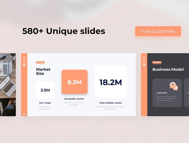 500页商业与流畅动画PPT,Keynote,Slide,Canva格式(无演示图) 2025-01-30 PPT PPT 模板套餐核心内容 一、模板数量与类型 550 + 独特幻灯片包含多样化设计模板,覆盖商务、展示、数据可视化等多种场景。 80+ A4 垂直幻灯片(可打印)专为打印场景优化,适合报告、手册等纸质资料输出。 二、设计与兼容性 明暗双版本提供 Light(浅色)和 Dark(深色)主题,适配不同演示环境(如白天 / 夜晚、投影 / 屏幕)。 分辨率与比例 16:9 宽屏(1920×1080 px),兼容主流投影仪、电脑屏幕及在线会议平台。 全响应式宽屏设计,自适应不同设备显示。 三、素材与功能 2000 + 矢量图标可自由缩放、修改颜色,适配各类主题(如科技、商务、教育等)。 附加设备样机(Bonus Device Mockups)包含手机、电脑、平板等设备模型,用于展示 PPT 在实际设备中的效果(提升专业感)。 矢量形状与元素所有图形均为矢量格式,支持任意编辑(调整大小、颜色、样式),无像素失真。 四、编辑与定制 谷歌免费字体模板中使用的字体均可在谷歌字体库免费获取,避免字体缺失问题。 主幻灯片选项(Master Slide) 支持拖拽上传图片,快速替换模板中的占位图。 预设多种母版(如标题页、内容页、图表页等),统一调整版式与风格。 全功能模块包含商务图表、项目组合、团队介绍、表格、数据时间轴等常用功能页,满足业务演示需求。 阅读全文 资源下载下载价格1.8 素材币VIP免费升级VIP立即购买