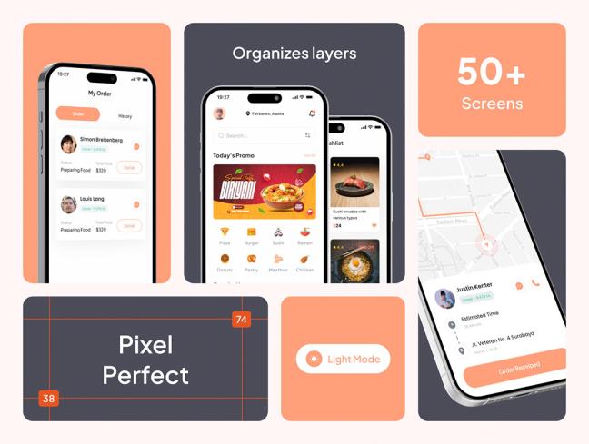 50页高端美食外卖app设计figma源文件分辨率375*812