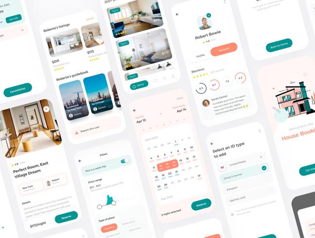 31页干净的旅游,酒店预订app设计figma、Sketch源文件分辨率375*812
