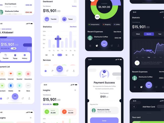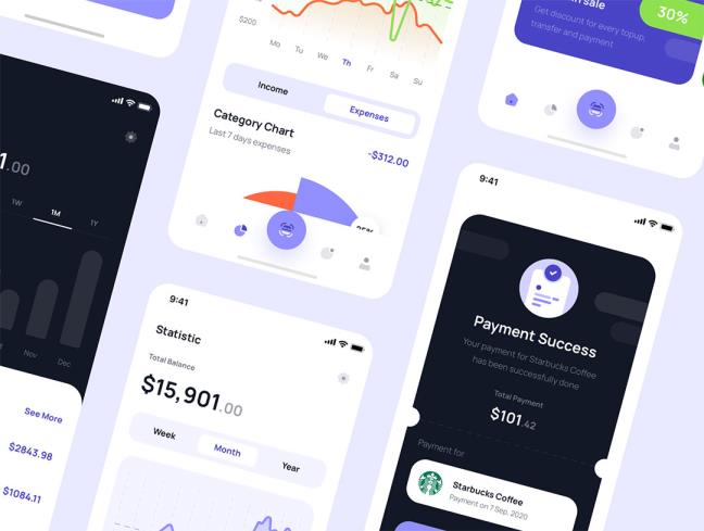 明暗100页优质的金融app设计figma源文件