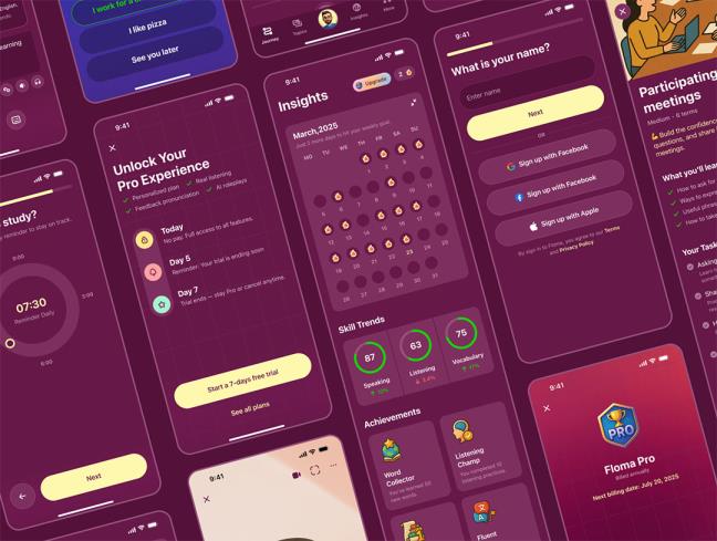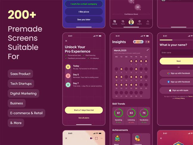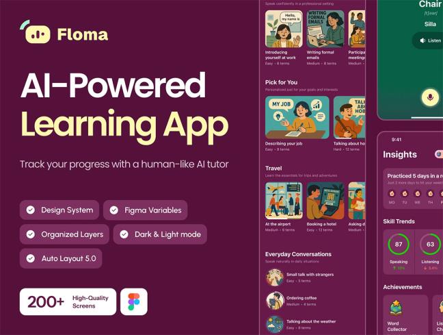 200页AI人工智能支持的英语口语 APP应用UI设计figma源文件