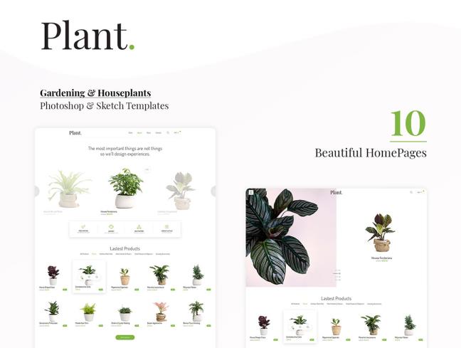 38页绿植电商网站原型psd,sketch格式(没有图片,需自己添加)