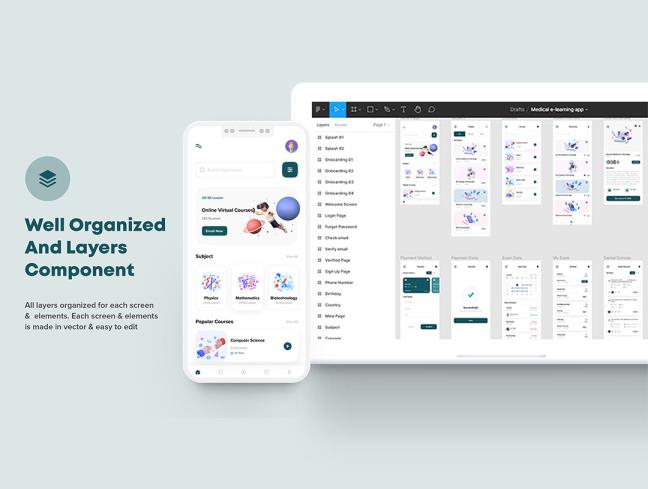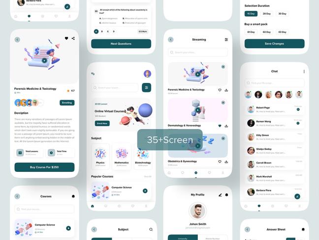 35页医疗电子学习APP应用程序UI套件sketch,xd,figma格式