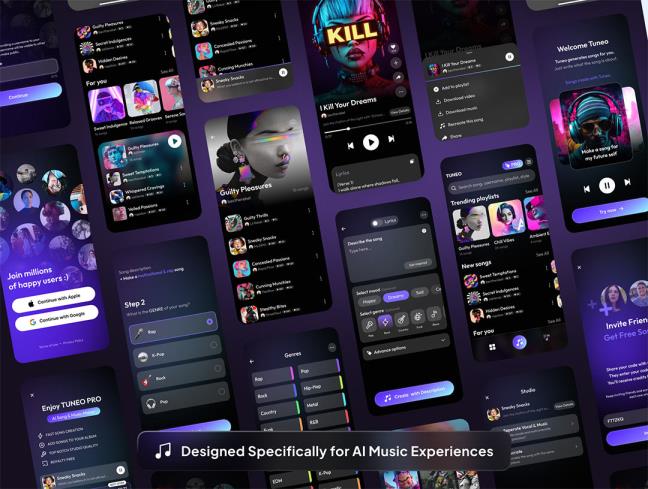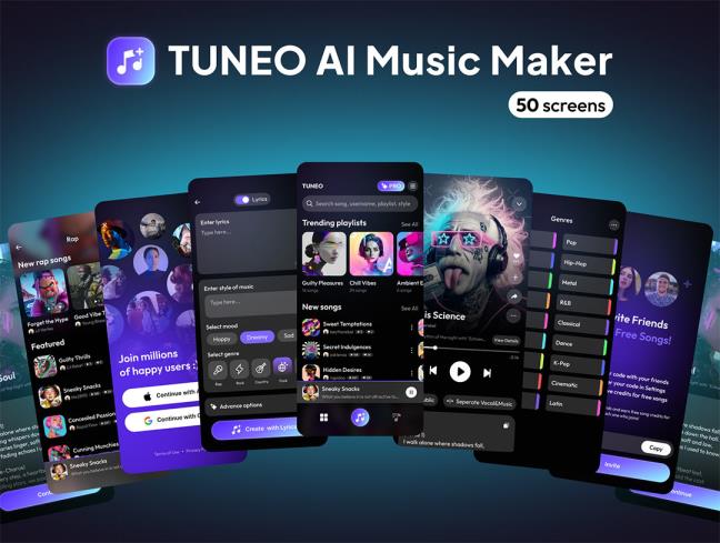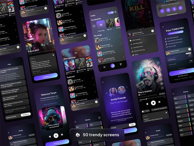 50页AI人工智能音乐制作APP应用程序UI设计figma源文件