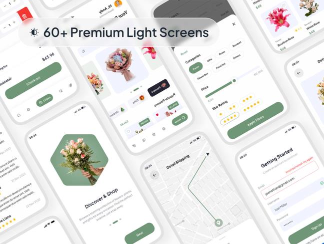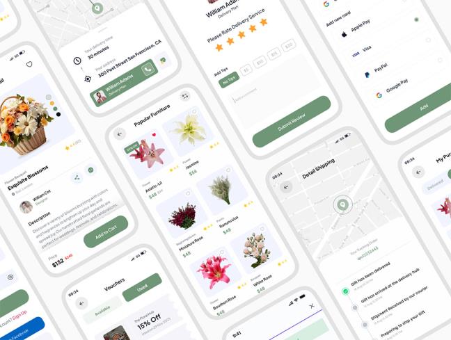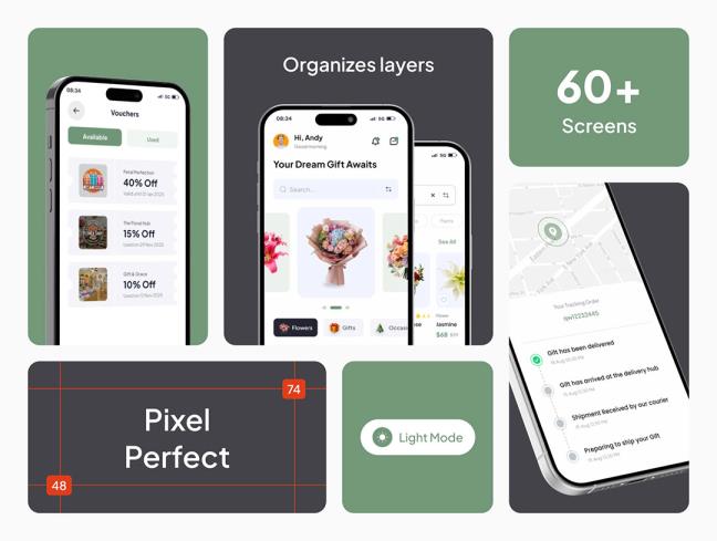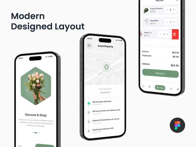 60页鲜花和礼品购物应用程序app设计figma源文件
