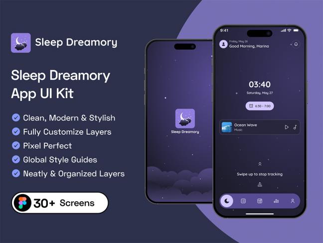 32页睡眠、冥想和放松APP设计 UI 套件figma格式