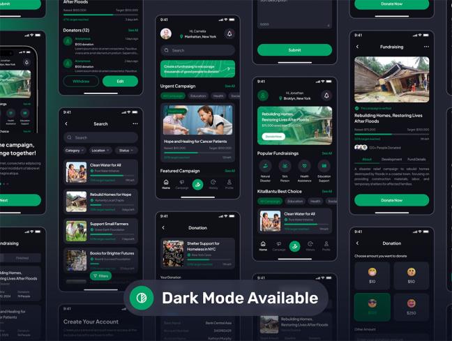 65页捐赠、慈善与筹款app设计figma格式(包含交互)