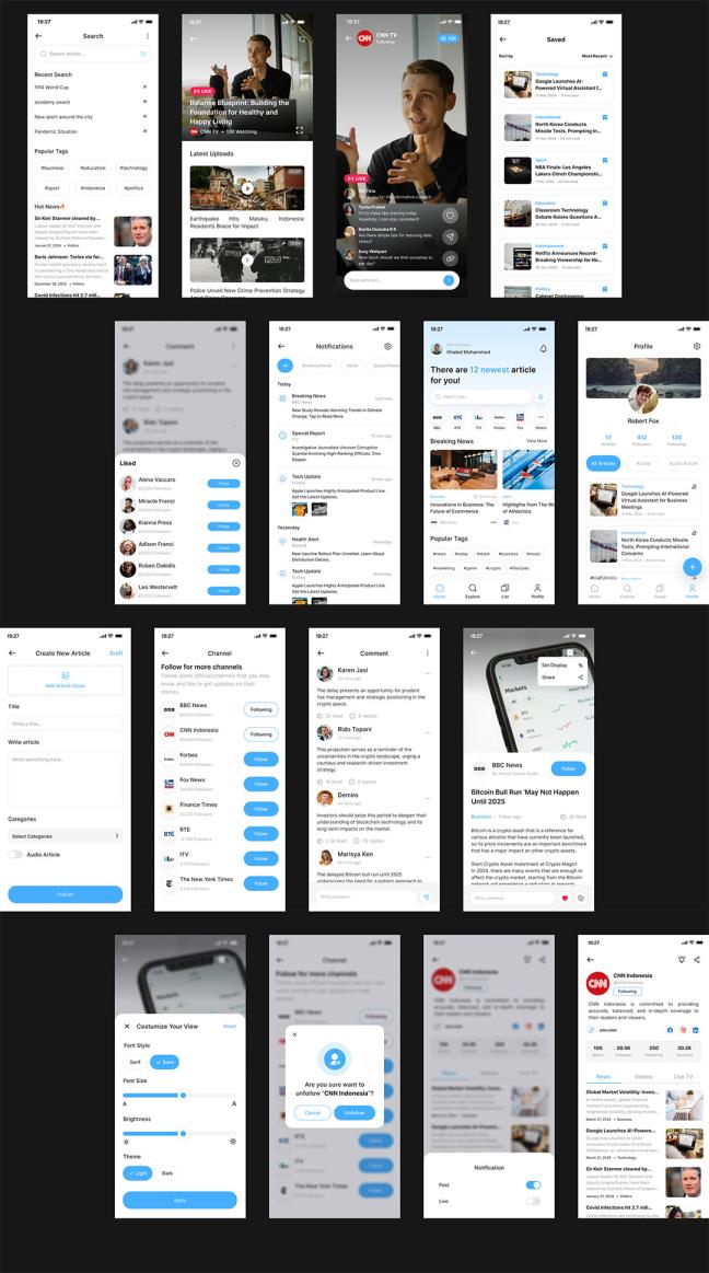 40页现代和极简风格的高级新闻移动应用程序UI工具包figma源文件