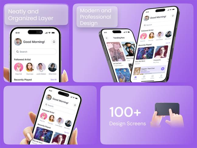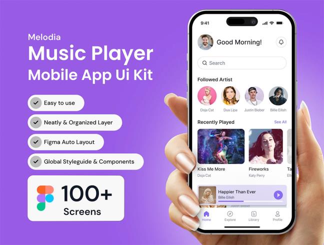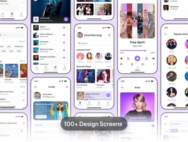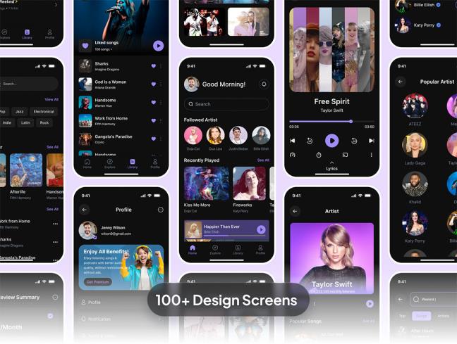 明暗共100页高级音乐播放器app界面设计figma源文件