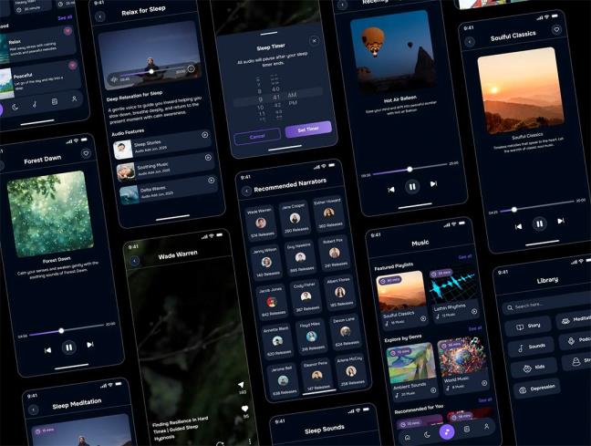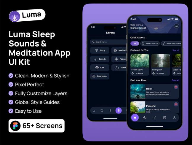 35页睡眠、放松和冥想app界面设计figma源文件