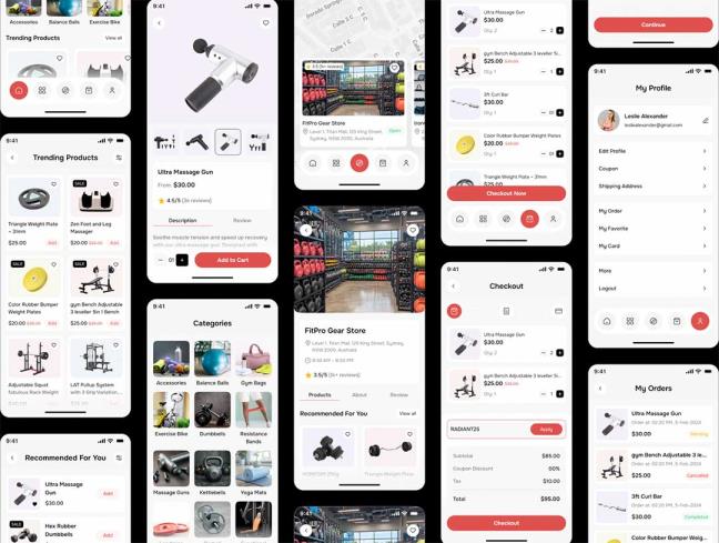 70页健身器材app界面设计figma源文件