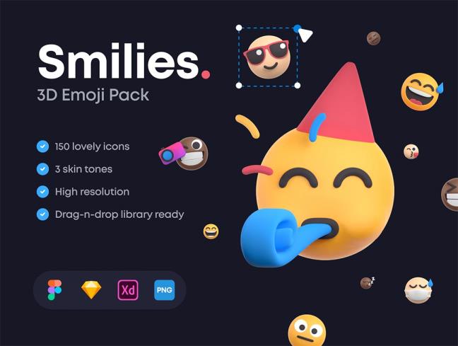 150个色彩缤纷的可爱3D图标Figma、Sketch、XD、PNG 格式
