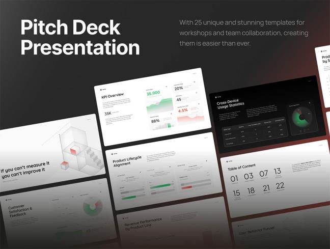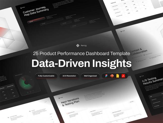25页产品绩效仪表盘模板Deck, PPTX, PDF格式