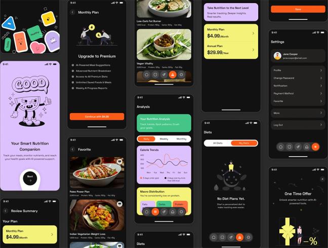 45页AI食物卡路里追踪APP应用程序figma源文件