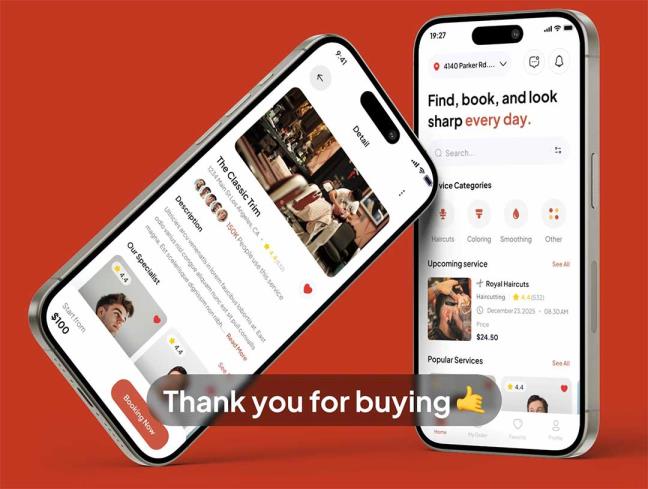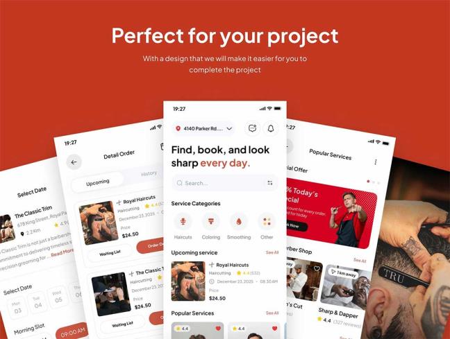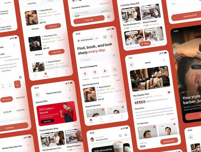 65页时尚理发店app界面设计figma源文件