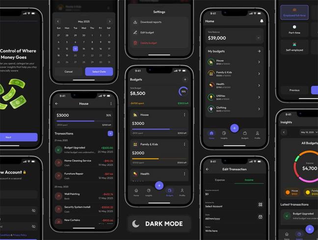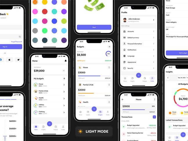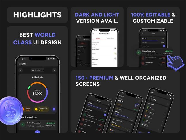 明暗共150页预算追踪app界面设计figma源文件