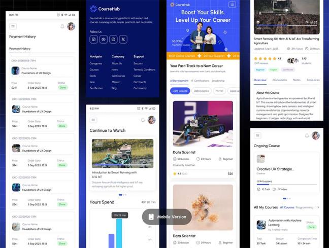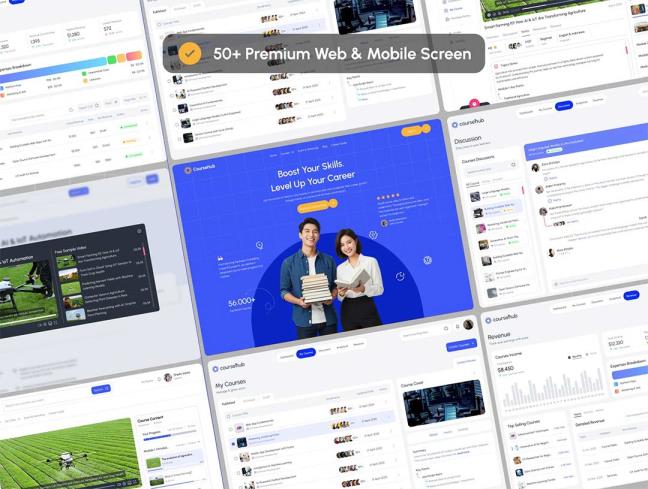 50页在线课程和学习管理网站界面响应式设计figma源文件