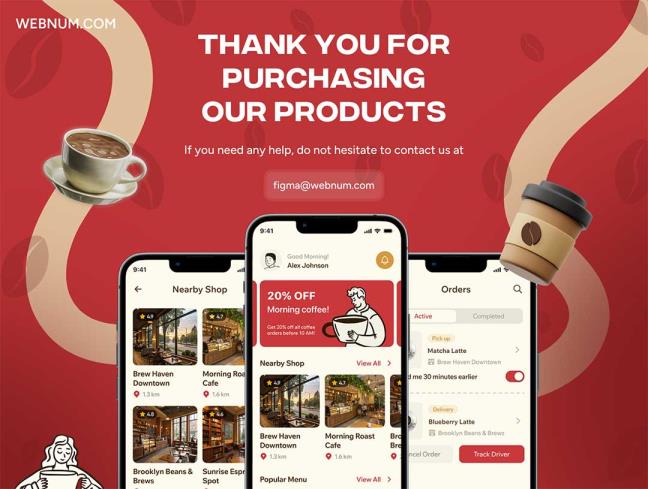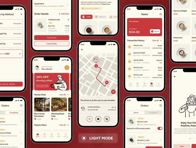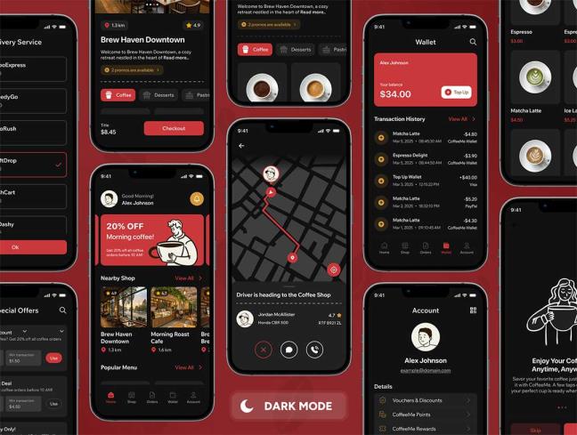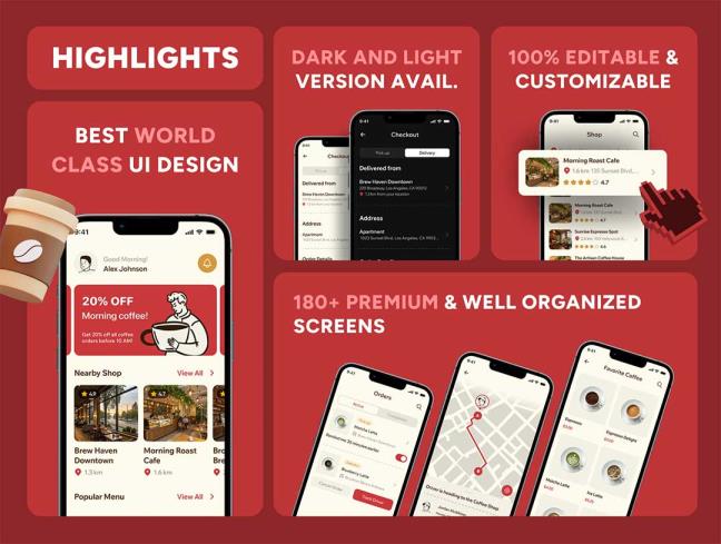 明暗180页咖啡店、咖啡馆和饮料外卖app界面设计figma源文件