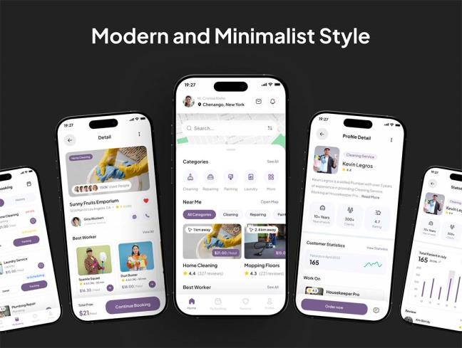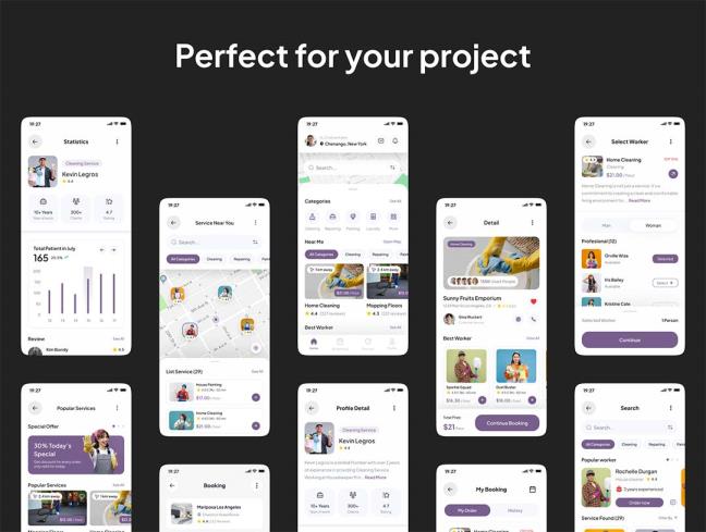 明暗共140页理发店、沙龙和美容服务app设计figma源文件