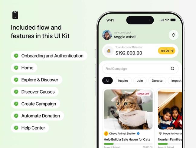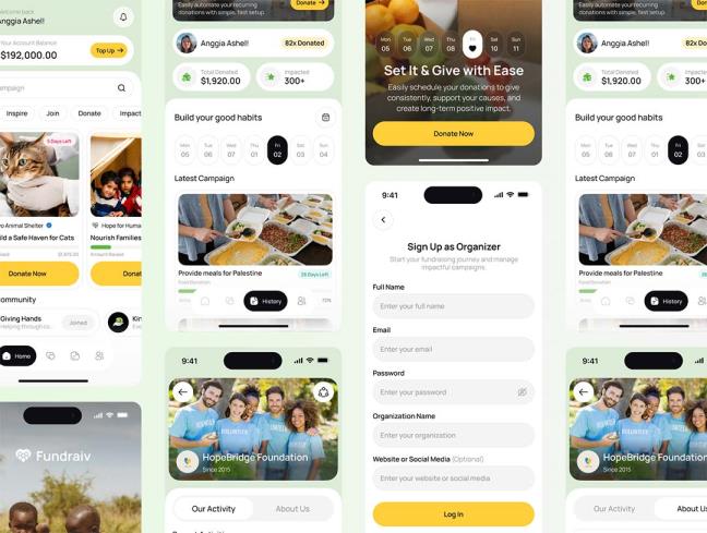 50页慈善筹款,非营利组织app界面设计figma源文件