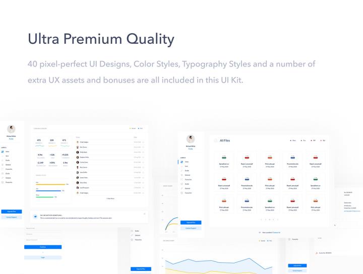 明暗40页社交仪表板UI工具包Figma、Sketch 、 XD格式