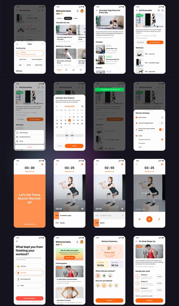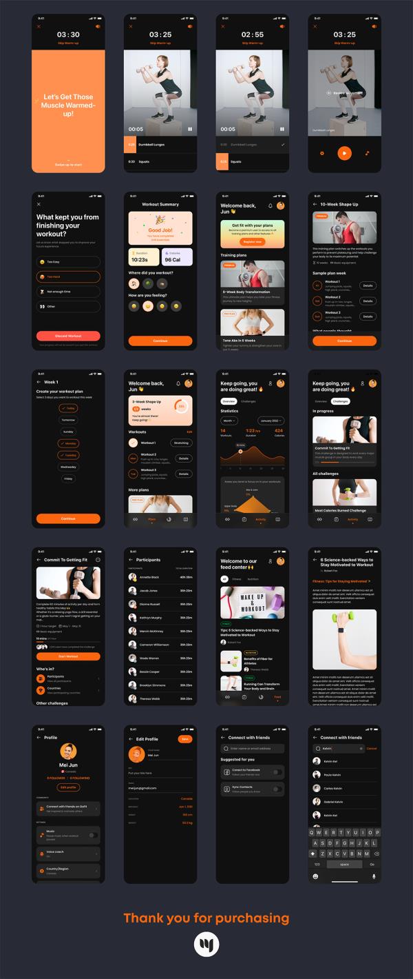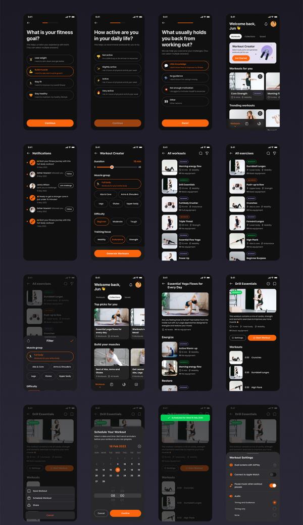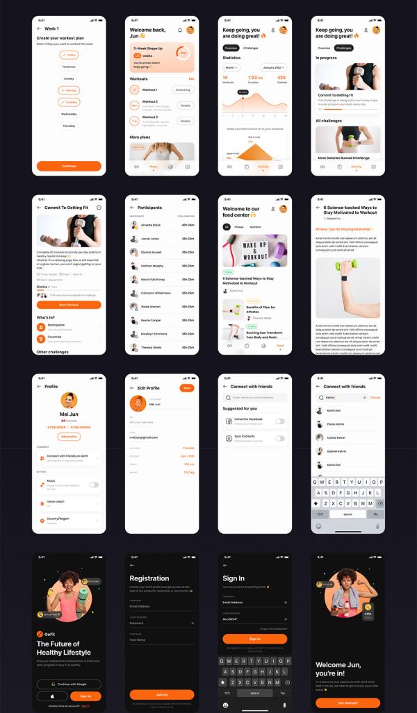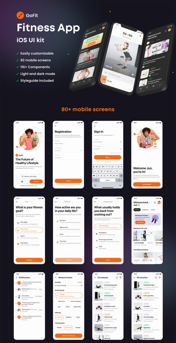 80页明暗模式GoFit -健身应用iOS UI工具包figma源文件