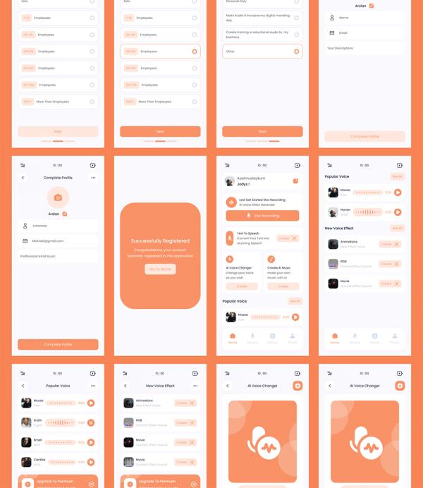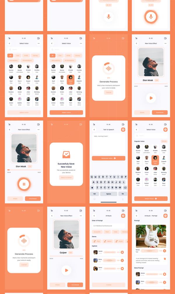 45页AI语音转换应用程序Ui工具包模板figma格式