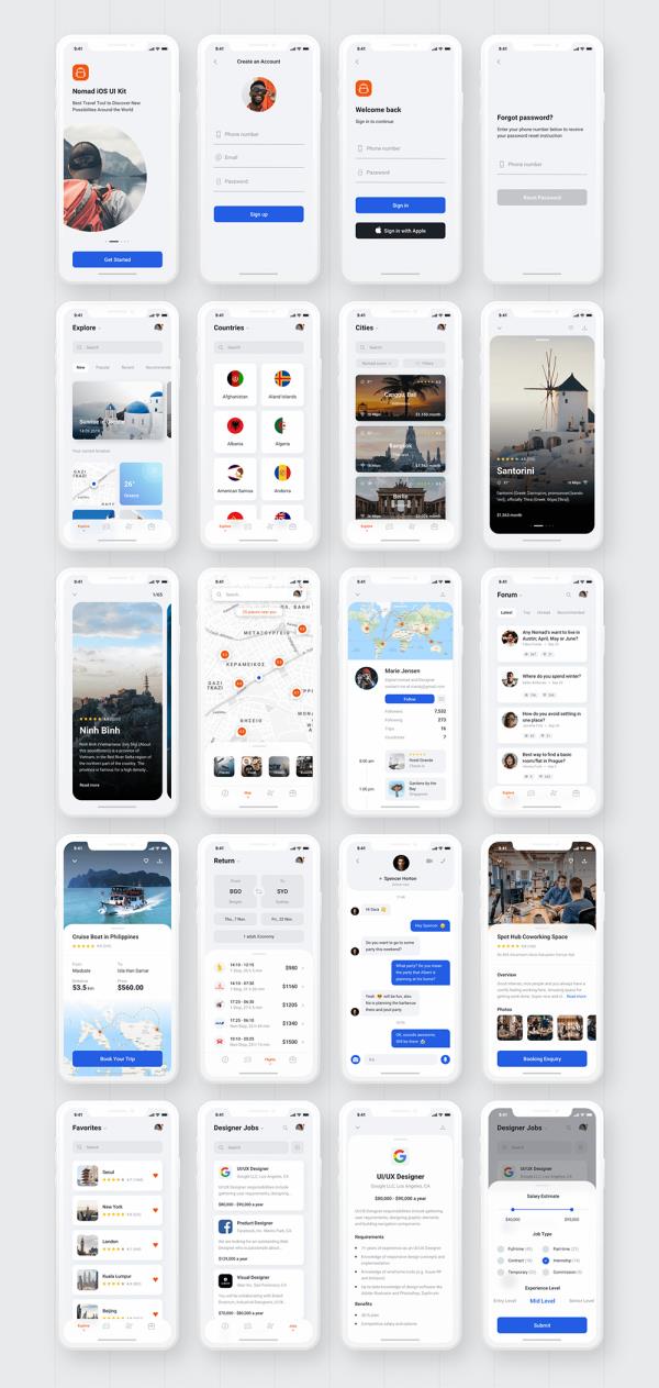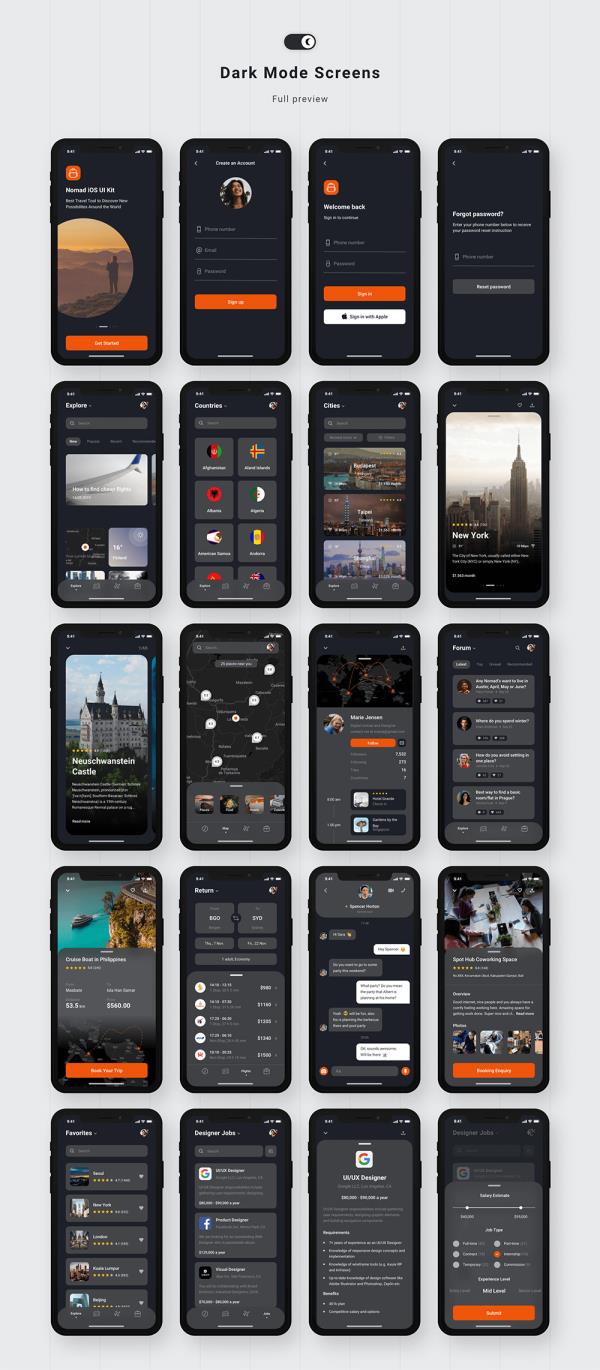40页旅游app明暗300个UI元素,520个图标figma,sketch格式